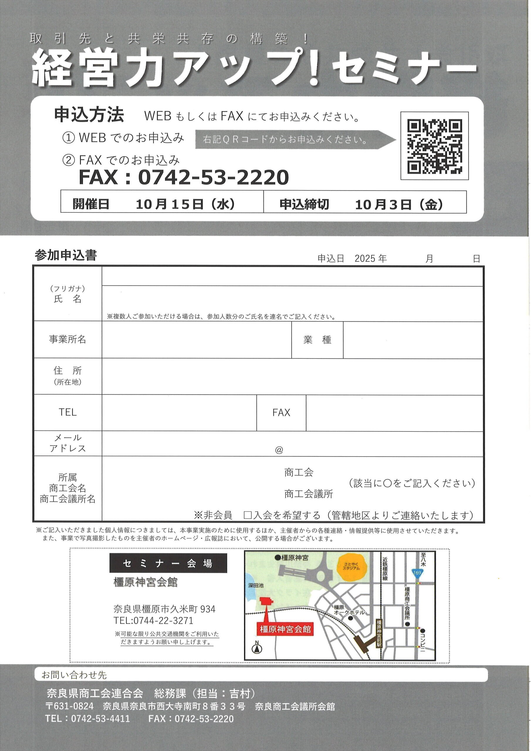 お問い合わせ先:奈良県商工会連合会 総務課(担当:吉村)